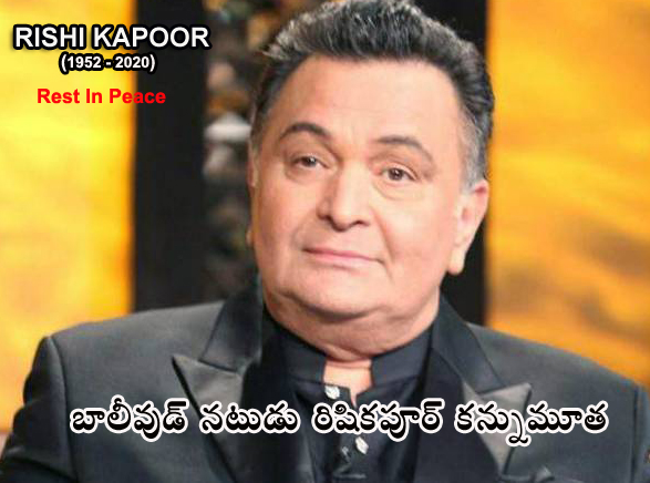 బాలీవుడ్ అగ్ర నటుడు రిషీకపూర్ కన్నుమూత బాలీవుడ్ అగ్ర నటుడు, రిషీకపూర్ ఇవాళ ఉదయం కన్ను మూశారు. నిన్న రాత్రి శ్వాసకోశ సమస్యతో బాధపడుతూ తీవ్ర అస్వస్థతకు...