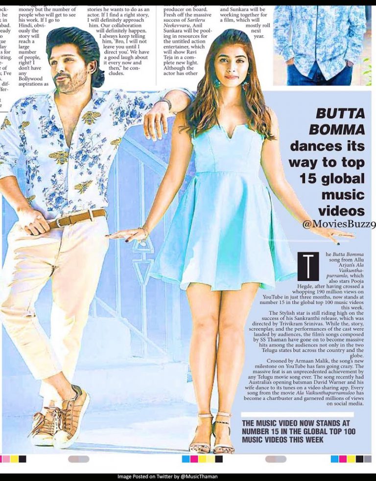ప్రపంచ రికార్డు క్రియేట్ చేసిన బుట్ట బొమ్మ పాట.అల వైకుంఠపురములో సినిమా పేరు చెబితే ముందుగా గుర్తుకు వచ్చేది అందులోని పాటలు. సామజ వరగామన, రాములోరాములా, బుట్ట బొమ్మ...